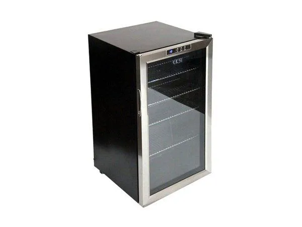 Холодильник барный т.м. EKSI серии BRG, мод. BRG93, 474х486х843мм, 85Вт, 220В, +5...+20С, объем 93л, стеклянная дверь, дверные рамы из нержавеющей стали, электронное управление, 4 полки, цвет корпуса-черный, без замка. Барный холодильник EKSI BRG93 предназначен для охлаждения и длительного хранения продуктов и напитков. Холодильник идеально подходит для зоны бара, а также может быть установлен в качестве минибара в гостиницах, отелях, хостелах. Температурный режим от +5...+18° С. Оснащён удобным электронным управлением. 470х486х843 мм, 93 л, 4 полки-решетки (расстояние между полками 110мм), 8 направляющих (расстояние между направляющими 58мм). Компрессор с прямым охлаждением. Металлический корпус черного цвета. Стеклянная дверь без замка, дверная рама из нержавеющей стали. Уровень шума составляет 42 dB, LED-подсветка. R600a.