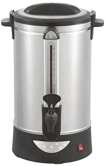 Корпус кипятильника выполнен из нержавеющей стали 201 с матовой поверхностью и двойными стенками, а крышка, ручки и другие элементы выполнены из пластика. Компактные размеры (350×320×535 мм) позволяют удобно разместить кипятильник на рабочей поверхности. Для контроля уровня жидкости предусмотрена визуальная шкала. Удобный кран-диспенсер позволяет с легкостью разливать воду. Электрический барный кипятильник отличается прочной конструкцией, стабильной работой и экономичным потреблением электроэнергии.