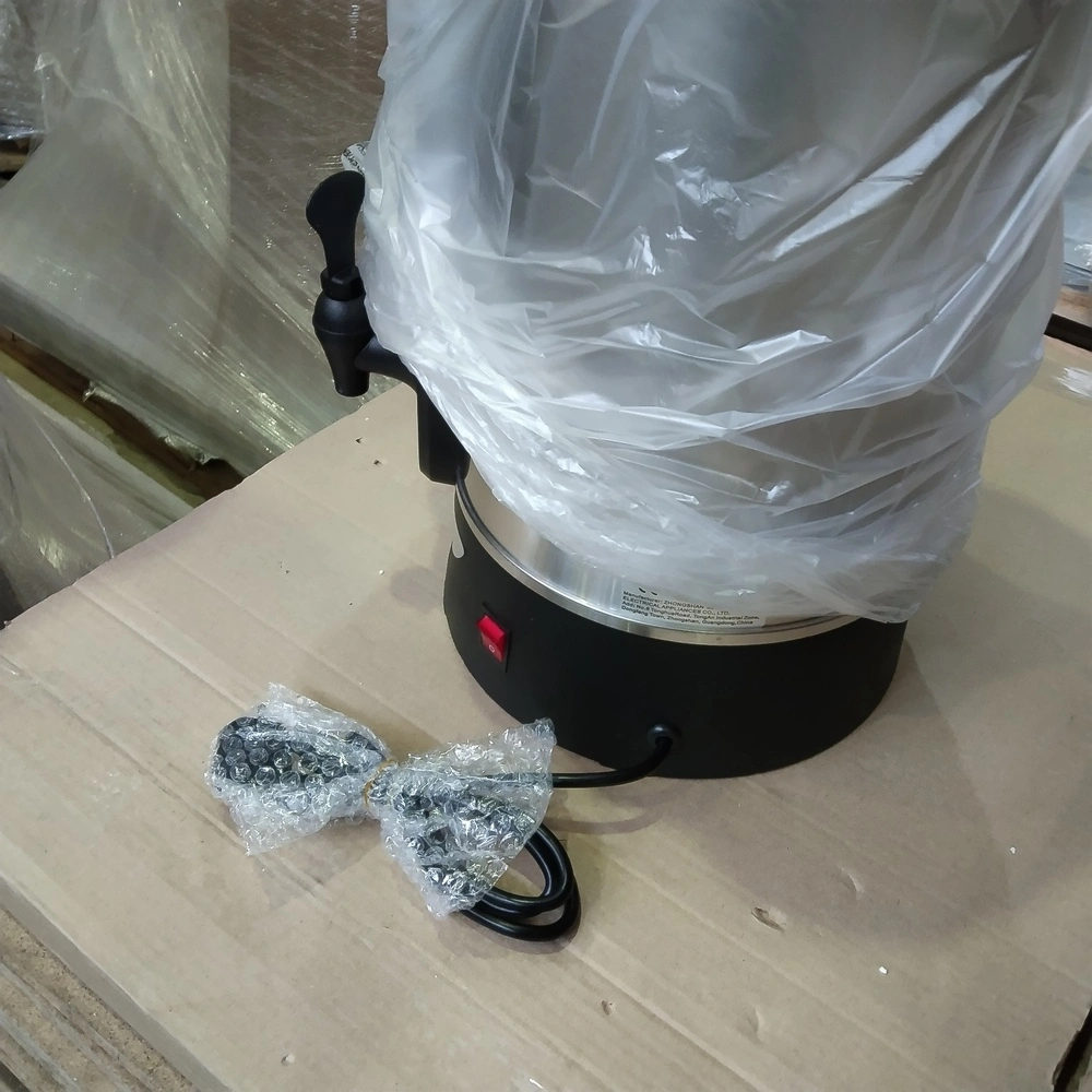 Корпус кипятильника выполнен из нержавеющей стали 201 с матовой поверхностью и двойными стенками, а крышка, ручки и другие элементы выполнены из пластика. Компактные размеры (350×320×535 мм) позволяют удобно разместить кипятильник на рабочей поверхности. Для контроля уровня жидкости предусмотрена визуальная шкала. Удобный кран-диспенсер позволяет с легкостью разливать воду. Электрический барный кипятильник отличается прочной конструкцией, стабильной работой и экономичным потреблением электроэнергии.
