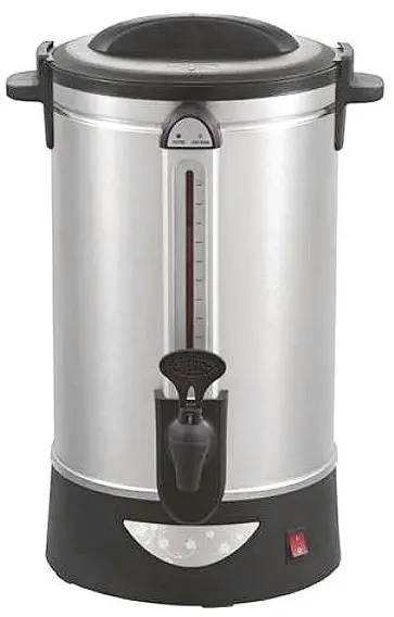 Корпус кипятильника выполнен из нержавеющей стали 201 с матовой поверхностью, а крышка, ручки и другие элементы выполнены из пластика. Объем – 30 литров. Компактные размеры (390×370×525 мм) позволяют удобно разместить кипятильник на рабочей поверхности. Для контроля уровня жидкости предусмотрена визуальная шкала. Удобный кран-диспенсер позволяет с легкостью разливать воду. Электрический барный кипятильник EKSI WBE 30T отличается надежной конструкцией, стабильной работой и экономичным потреблением электроэнергии.