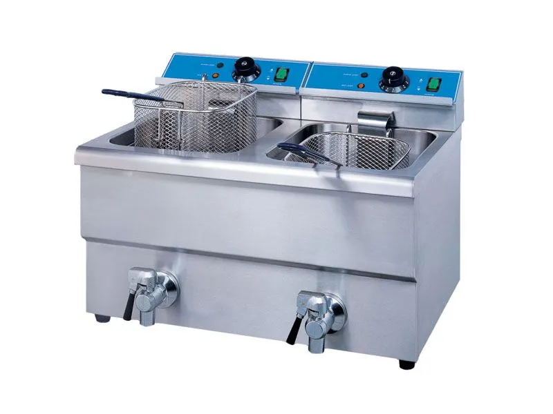 Фритюрница электр. т.м.EKSI серии HEF, мод. HEF-12L-2 с краном, 2х12л, 580х550х410мм, 220В, 6500Вт, 2 силовых кабеля с вилкой.