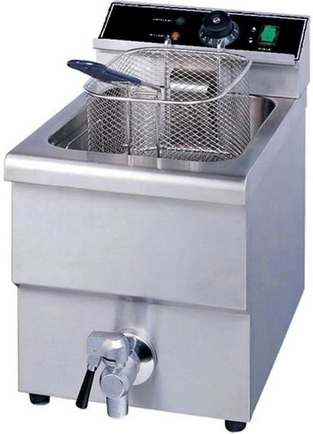 Корпус выполнен из нержавеющей стали, устойчив к механическим нагрузкам и прост в уходе. Встроенный сливной кран позволяет быстро удалять использованное масло, упрощая обслуживание оборудования. В комплект входят жарочная корзина и крышка. Профессиональная электрическая фритюрница EKSI HEF-12LT отлично подойдет для кафе, фуд-кортов и кухонь с интенсивным режимом работы.