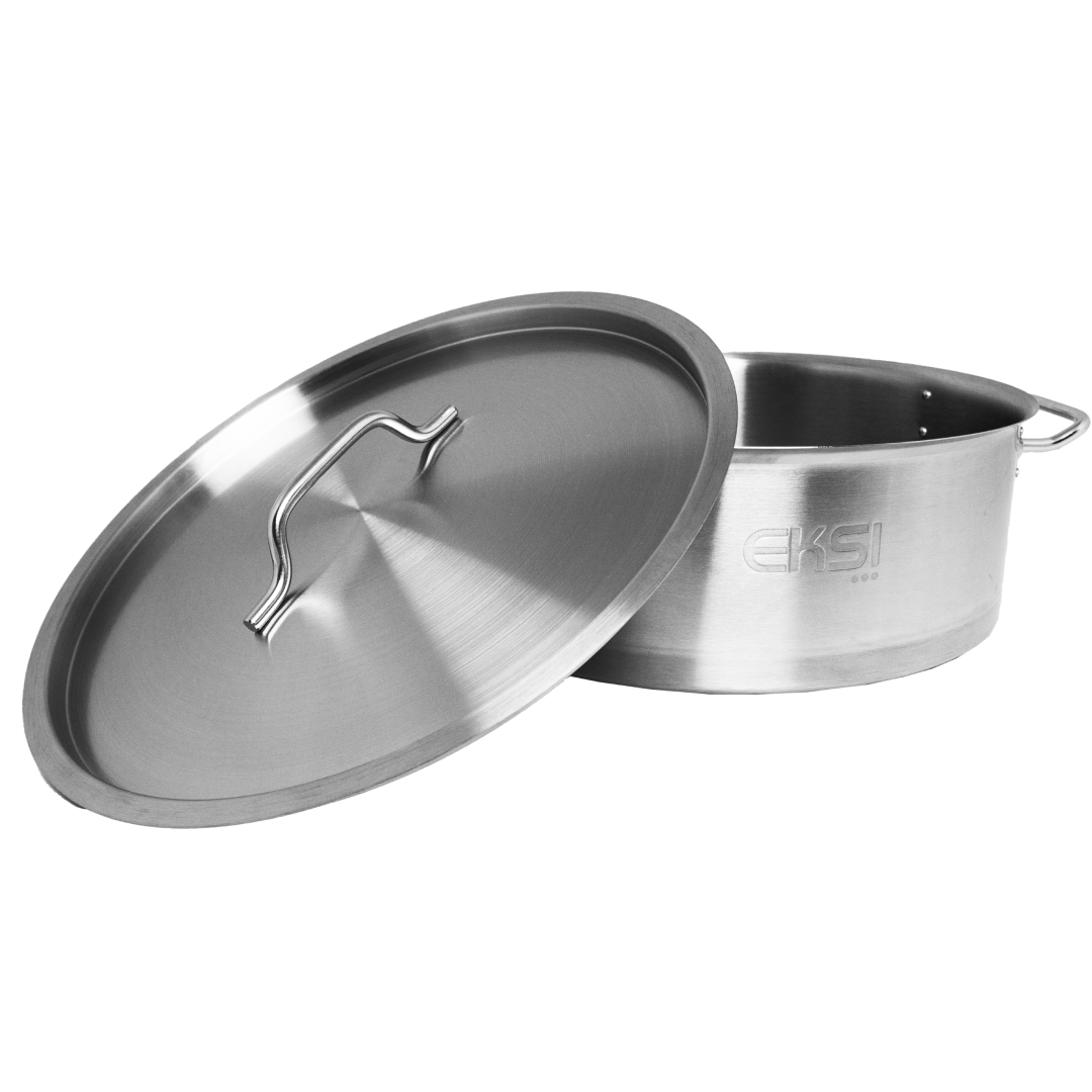 Этот вместительный котел на 35 литров из нержавеющей стали AISI 201 станет незаменимым помощником при готовке для большой семьи или организации. С тройным дном, состоящим из нержавейки, алюминия и нержавейки, он обеспечивает равномерный прогрев и позволяет экономить время при готовке.
