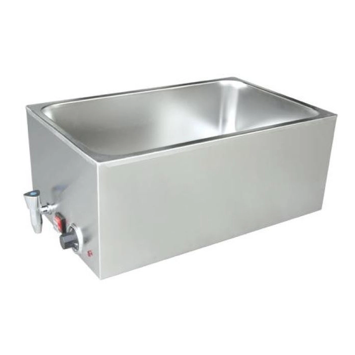Модель рассчитана на гастроемкости глубиной до 150 мм и оснащена удобным сливным краном. Мощность 1200 Вт и подключение к стандартной электросети 220 В обеспечивают быстрый разогрев и стабильную работу. Корпус выполнен из прочной нержавеющей стали, что гарантирует устойчивость к влаге и длительный срок службы. Мармит для общепита EKSI BM165BT подходит для установки на стол и станет практичным выбором для кафе, столовых, фуд-кортов и других точек быстрого питания.