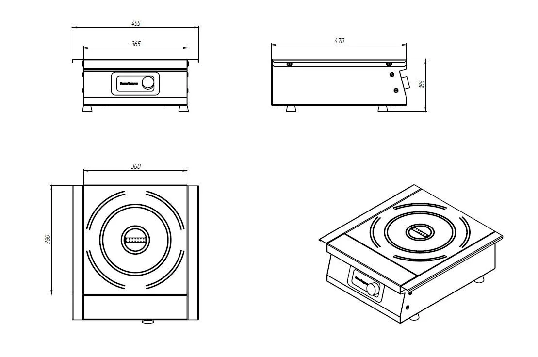 Плита электрическая индукционная т.м. Eksi, мод. ИПЭ-1 Б 3,5 (1 конф. 3,5 кВт), 465(385)х450х170мм, 3500Вт, 220В, время нагрева посуды: 1-5 мин., каркас из нержавещей стали, мощные вентеляторы - защита от перегрева, защищенные кромки стекла