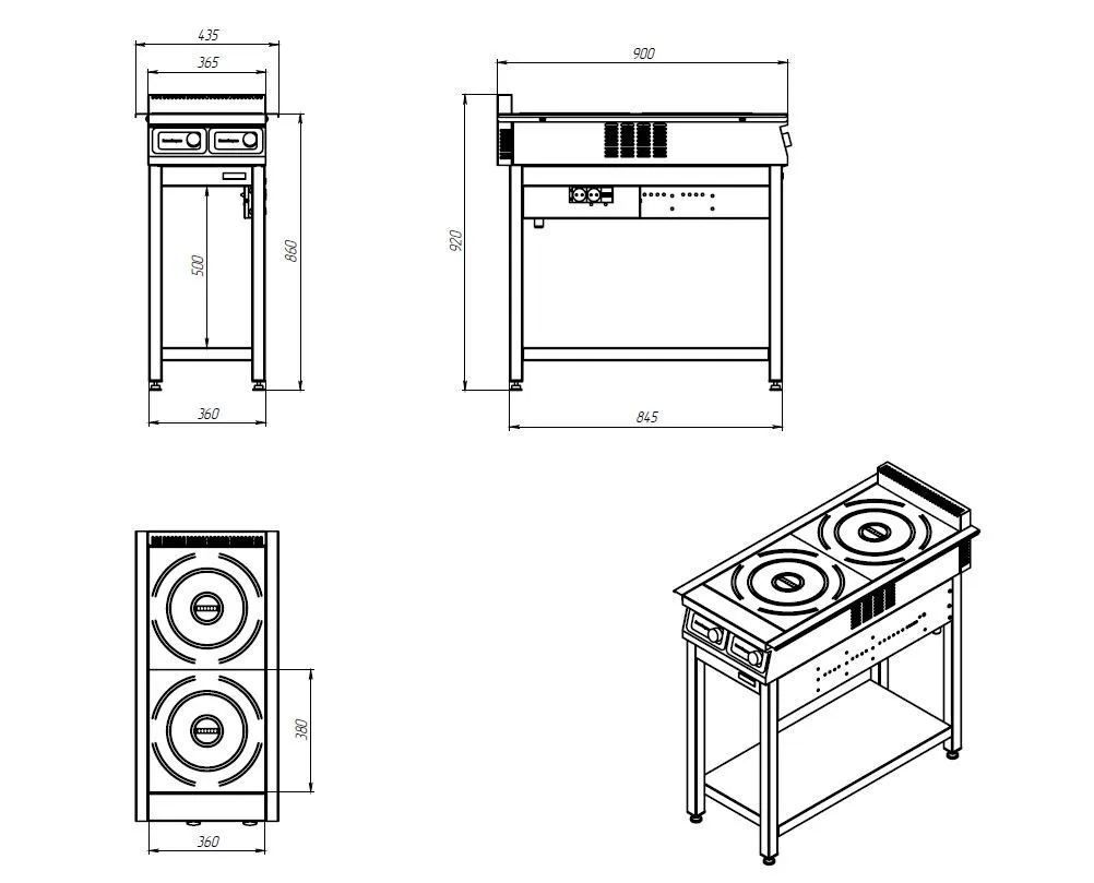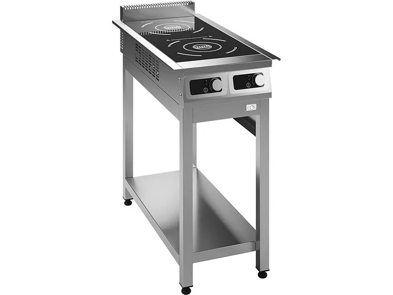 Плита электрическая индукционная т.м. Eksi, мод. ИПЭ-2 Б 3,5 (2 конф. 3,5 кВт, подставка), 445(365)х900х860мм, 7000Вт, 380В, время нагрева посуды: 1-5 мин., каркас из нержавещей стали, мощные вентеляторы - защита от перегрева, защищенные кромки стекла.