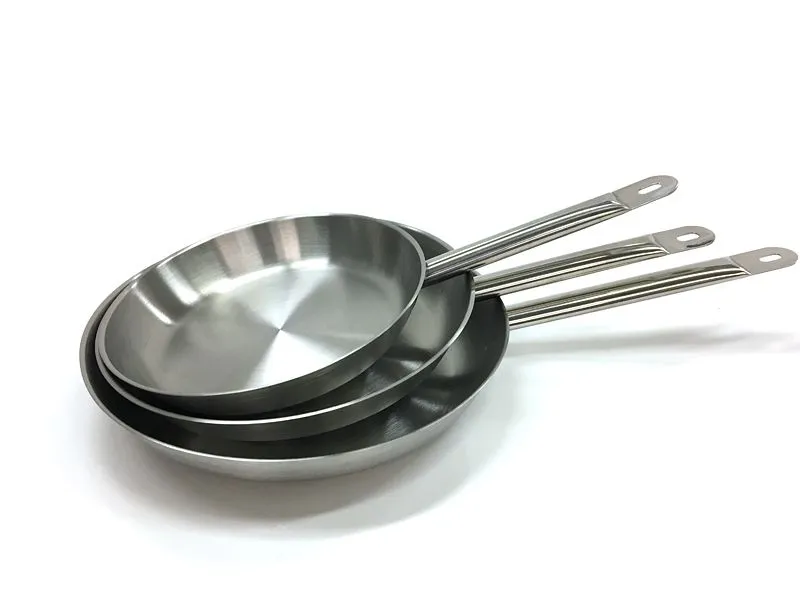 Представляем вам сковороду без покрытия диаметром 32 см, выполненную из высококачественной нержавеющей стали AISI 201. Она станет вашим верным помощником на кухне.