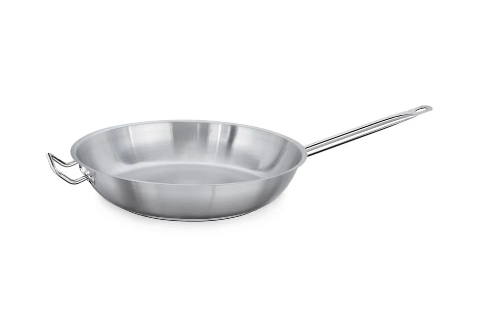 Представляем вам сковороду без покрытия диаметром 32 см, выполненную из высококачественной нержавеющей стали AISI 201. Она станет вашим верным помощником на кухне.