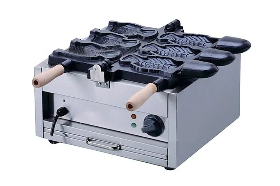 EKSI TAWB-3 FISH — это профессиональная вафельница для приготовления популярного азиатского десерта тайяки в виде объемных рыбок с начинкой. Аппарат оснащен трехсекционной формой с антипригарным покрытием, благодаря чему вафли легко извлекаются без повреждений. Время приготовления одной порции составляет 4–5 минут, а конструкция с «язычками» позволяет выпекать полые вафли, отлично подходящие для наполнения мороженым, кремом, ягодами или взбитыми сливками.